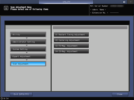 Panel de control - Utilidades/Contadores - [Conf. de administrador] - [Configuración sistema] - [Ajuste avanzado] - [Ajuste de escáner]