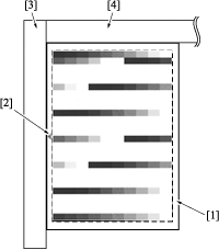 Mueva y toque el gráfico [1] firmemente contra el índice de tamaño de documento de dirección vertical [3] y el índice de tamaño de documento de dirección horizontal [4], y colóquelo en el Cristal de originales.