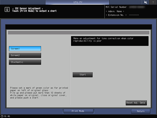 La corrección de gamma de la impresora suele realizarse automáticamente de forma periódica, pero los cambios en las características de IDC Center pueden impedir una medición precisa de la densidad. Efectúe el [Aj.sensor gamma de impresora] si el color de la imagen de salida no es preciso.