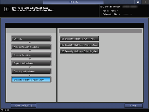 Panel de control - Utilidades/Contadores - [Conf. de administrador] - [Configuración sistema] - [Ajuste avanzado] - [Ajuste de calidad] - [Aj. de balance de densidad]