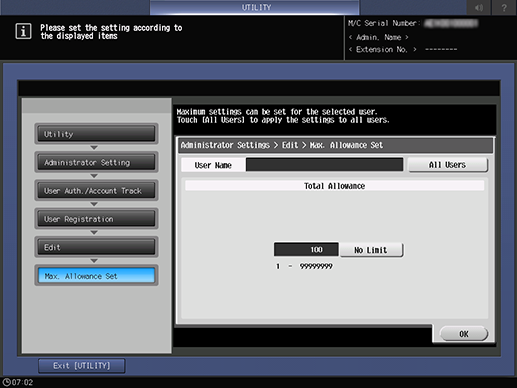 [Ajuste permiso máx.] | Indique el número máximo de hojas imprimibles. | |