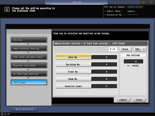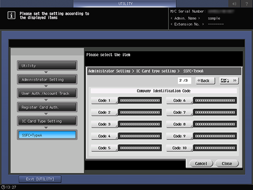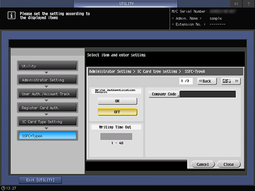 Configure los ajustes si está seleccionado [SSFC+TipoA] en la [Configuración de tipo de tarjeta de IC].