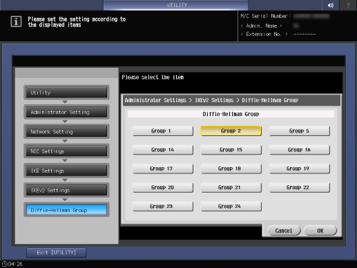 Si selecciona [DESACT.], el grupo Diffie-Hellman no se configurará.