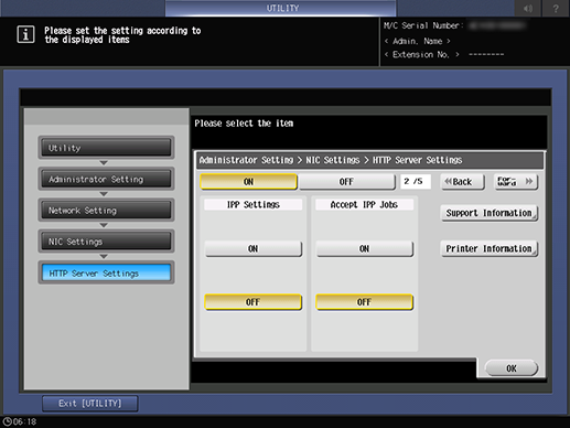 Se puede configurar el uso de Web Connection y de la impresora IPP.