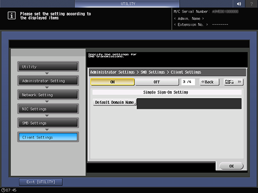 [Config. registro individual] | Puede configurar el nombre de dominio predeterminado. Necesario para utilizar la función de registro individual. Pulse [Nombre pred. dominio] para introducir el nombre de dominio predeterminado. Se pueden introducir hasta 64 caracteres de un byte. | |