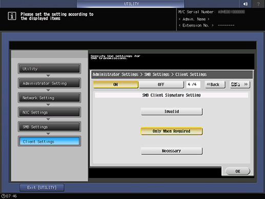 [Configuración de firma de cliente SMB] | [No válido] | No necesita la firma del cliente SMB. |