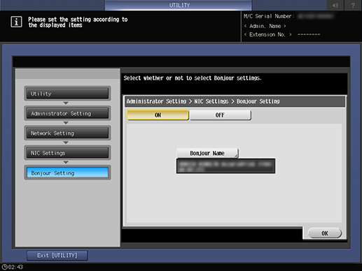 [Nombre de Bonjour] | Define el Bonjour que se visualiza como nombre de dispositivo al conectarse. Se pueden introducir hasta 63 caracteres de un byte. |