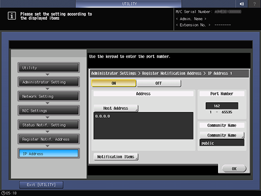 Introduzca el número de puerto utilizando el Teclado del Panel de control. Rango: de 1 a 65535
