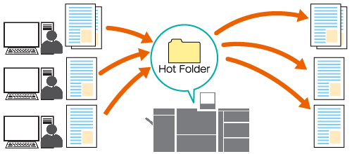 Utilizando una hot folder del sistema podrá imprimir archivos PDF, TIFF y otros directamente sin iniciar aplicaciones ni instalar AccurioPro Hot Folder.