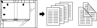 Cuando se combina la función Cuadernillo, se puede cambiar el orden de los datos de escáner para la impresión, de modo que los datos de escáner sigan el orden de las páginas de un libro de plegado y grapado después del escaneado.