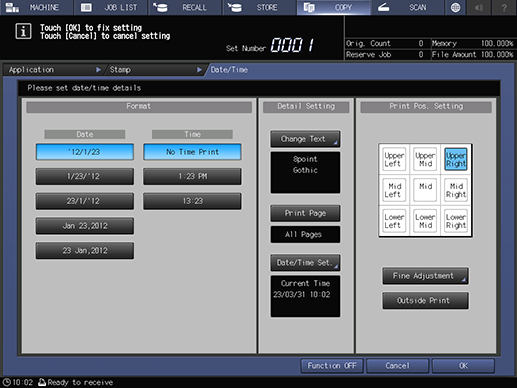 Si selecciona [Configurar hora], utilice el teclado en pantalla para introducir la fecha y la hora.