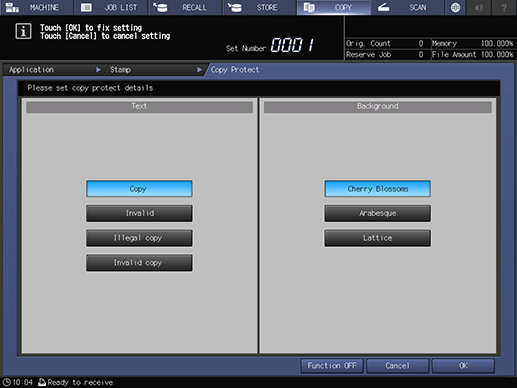 [Fondo] | [Cerezo en flor] | Permite seleccionar el fondo para protección contra copia. |