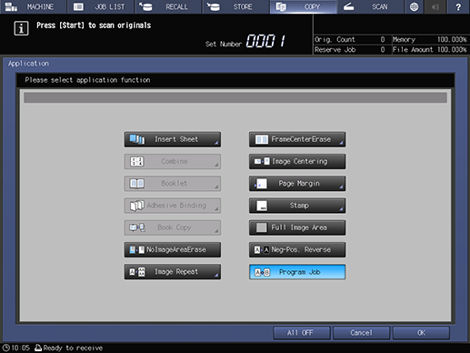 [Programar trab] no puede registrarse en la configuración de memoria del modo copia.