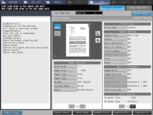 Si ha pulsado [Grupo hecho] o [Hecho+división] sin pulsar [Completar todo], o ha pulsado [Grupo hecho] en la pantalla [Editar tarea progr] que aparece al pulsar [Compl./Editar], pulse Modo Chequeo en la pantalla del Panel de control para volver a la pantalla [Editar tarea progr].