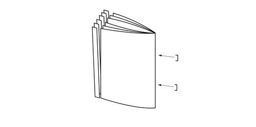 Si se utiliza papel fino que se ondule fácilmente para plegado y grapado, la salida de las impresiones debe ser de manera que el papel se ondule hacia el interior. Antes de imprimir un cuadernillo, imprima solo unas pocas hojas en la Bandeja secundaria y revise la dirección de la ondulación. Si el papel impreso está curvado hacia arriba, se curva hacia dentro cuando se crea un folleto.