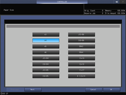 - Defina el papel predeterminado para cargar en la bandeja seleccionada en [Configuración de bandeja de papel].