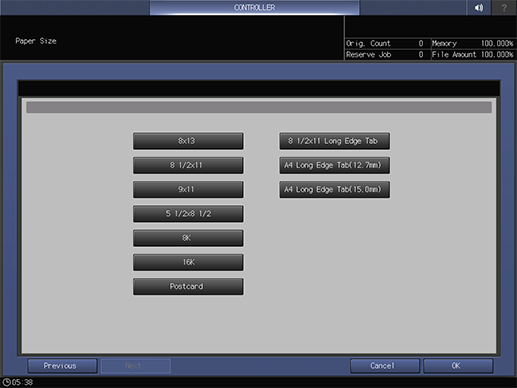 Controlador > [Configuración de impresión directa] > [Configuración básica] > [Tamano del papel]