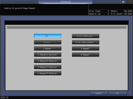 Permite configurar los ajustes para combinar un original de varias páginas en 1 sola página o para imprimir de forma repetida 1 solo original en 1 sola hoja de papel para impresión directa.