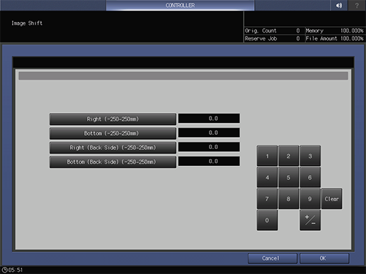 [A la derecha (-250~250mm)]: Desplaza la imagen impresa en la parte frontal hacia la derecha.