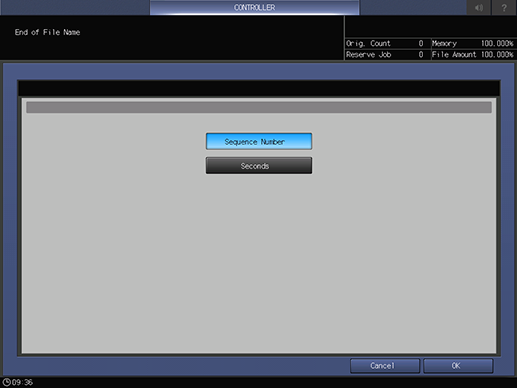 [Segundos] | Asigna 2 dígitos del valor en segundos de la hora de escaneado para añadir al final del nombre de archivo. |