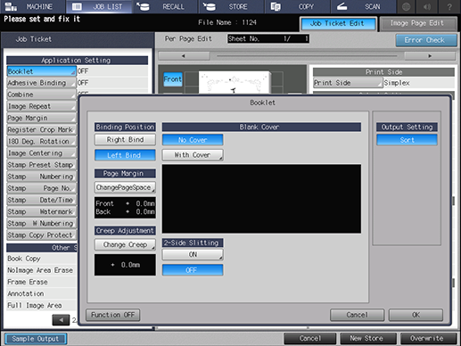 [PlegadoMitadMúlt] | Seleccione [Activ.] para aplicar plegado central multihoja a un cuadernillo. | |