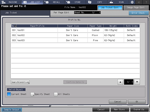 El perfil de papel de destino también se puede buscar por condiciones de configuración.