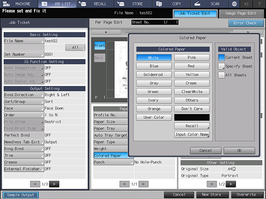 [Objeto válido] | Permite seleccionar una hoja para reflejar en ella el ajuste de . Para obtener más información, consulte Procedimiento de ajuste (ajuste de [Objeto válido]). |