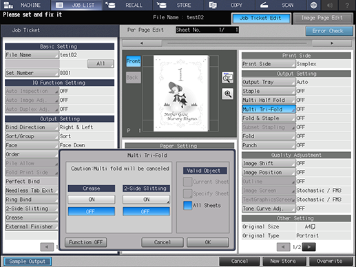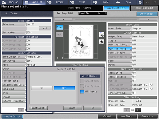 Configure el ajuste para aplicar la función de plegado tríptico multihoja al papel.