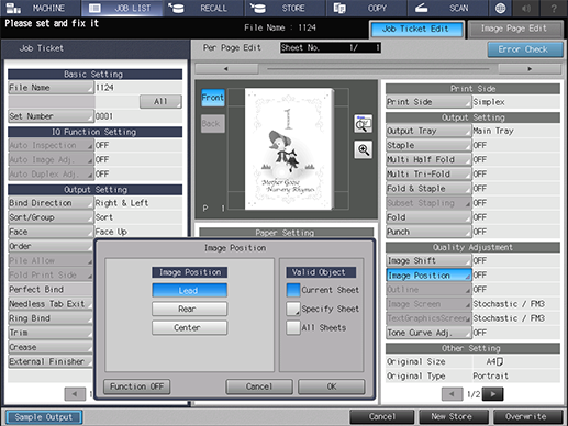 [Posición de imagen] | [Del.] | Coloca la imagen original en el borde delantero del papel. |