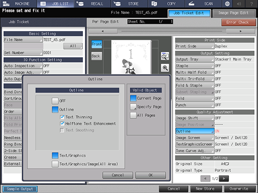 [Suavizado de texto] | Imprime de forma uniforme el contorno de texto, gráficos o imágenes de densidad 100 %. | |
