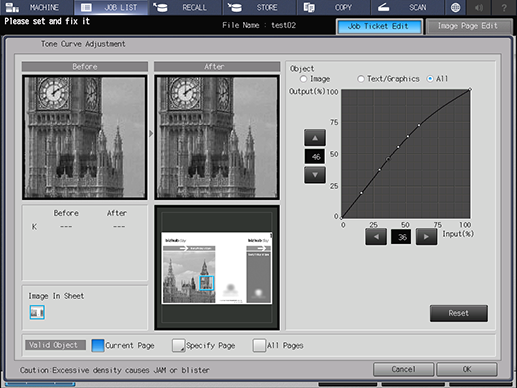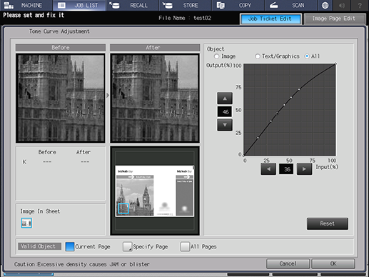 [Objeto válido] | Seleccione la página en la que se reflejará el ajuste. Para obtener más información, consulte Procedimiento de ajuste (ajuste de [Objeto válido]). | |