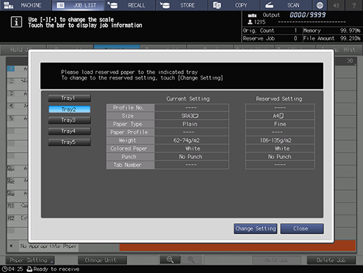 Si la configuración del papel de la Bandeja de papel utilizada para imprimir es diferente de la de la [Reservar tarea], cambie la configuración del papel de la Bandeja de papel a la de la [Reservar tarea].