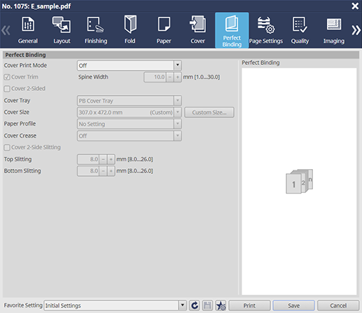 [Bandeja de Portadas]*3 | Permite definir la bandeja de papel que se utiliza para las cubiertas de encuadernación a la americana. | |