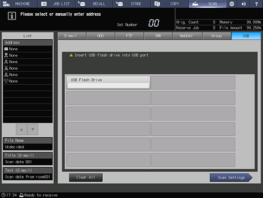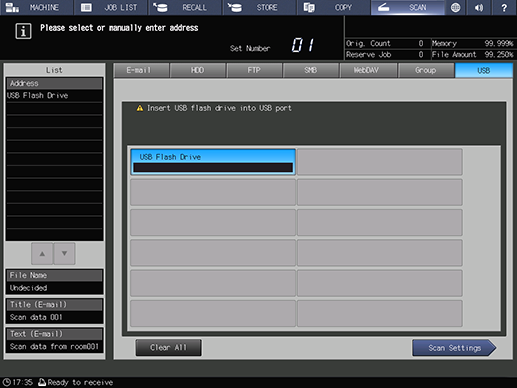 Se inicia el escaneado y los datos de escáner se envían al destino seleccionado.