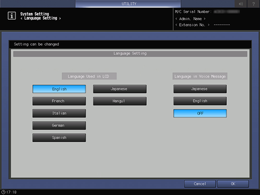 Además, puede seleccionar la presencia/ausencia de notificación de voz y el idioma para la notificación de voz.
