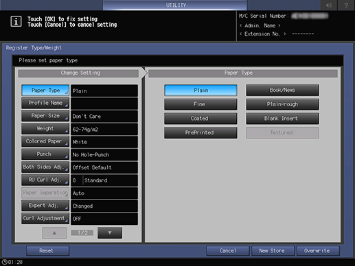 Permite registrar perfiles de papel nuevos o editar perfiles de papel ya registrados.