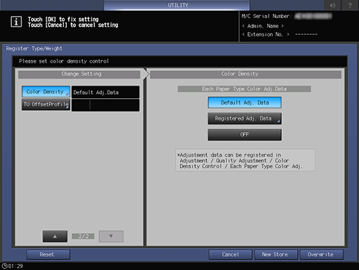 Aparece cuando Unidad de relé RU-518m está montado. Esta función ajusta la densidad del papel de salida. | |