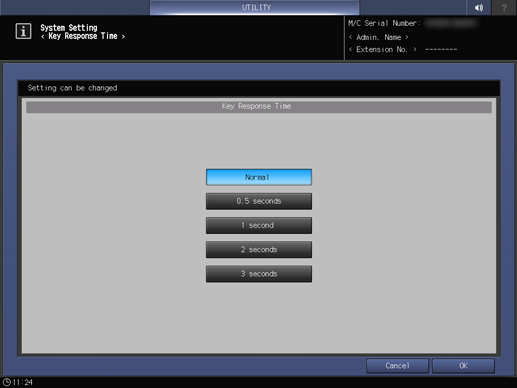 Cambiar el tiempo necesario para que el sistema responda después de pulsar la tecla Panel táctil o Panel de control.