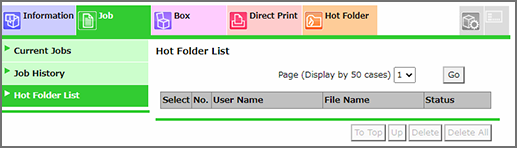 [Página (mostrar para 50 carpetas)] | Selecciona la página visualizada de la lista del menú. Se muestran 50 archivos en cada página. |