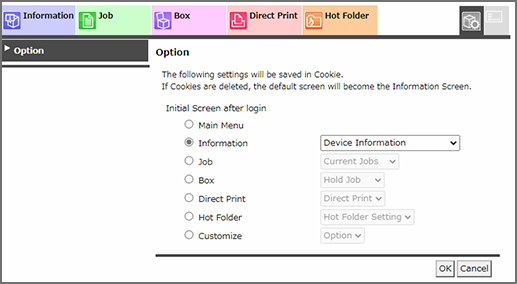 Define la pantalla predeterminada que se muestra después de iniciar sesión en el modo de usuario.