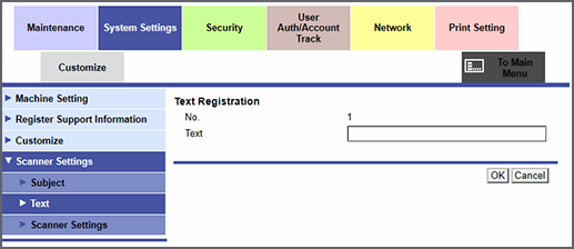 Permite definir el texto del correo electrónico para enviar los datos de escáner.