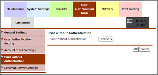 Puede configurar las opciones para permitir la impresión por parte de un usuario que no esté registrado como tal.