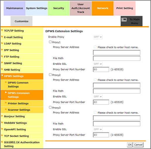 [Ruta de archivo] | Establece la ruta de archivo del servidor proxy. Se pueden introducir hasta 255 caracteres de un byte. | |