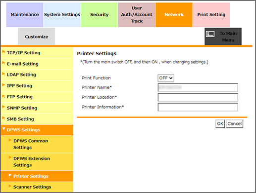 Permite configurar varios ajustes obligatorios para imprimir datos usando Web service.
