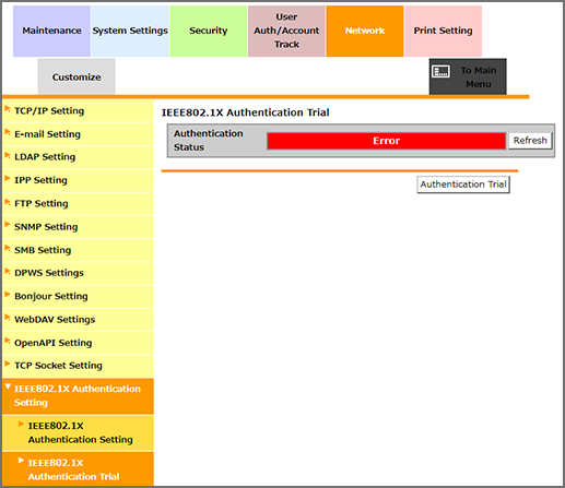 [Prueba de autenticación] | Lleva a cabo una prueba de autenticación. Se muestra el resultado en [Estado de autenticación]. |