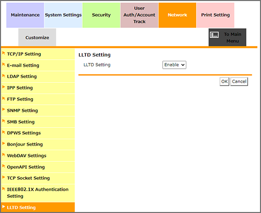 [Configuración LLTD] | [Activar] | Utiliza LLTD. |