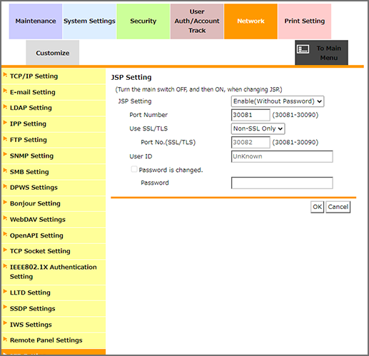 [Activar (Con Contraseña)] | Activa JSP sin autenticación. | |