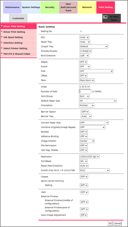 [DESACT] | No se utiliza la unidad de acabado externa. | |
