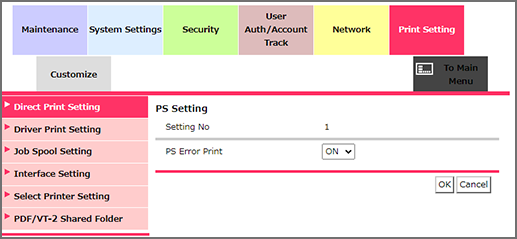 [Error de impresión PS] | [ACTIV.] | Se imprime la información de error. |