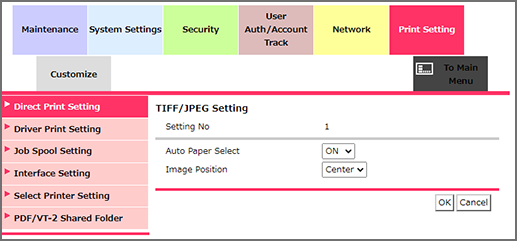 Defina el valor predeterminado de los elementos para impresión directa de una imagen cuyo lenguaje de descripción de página es TIFF o JPEG.